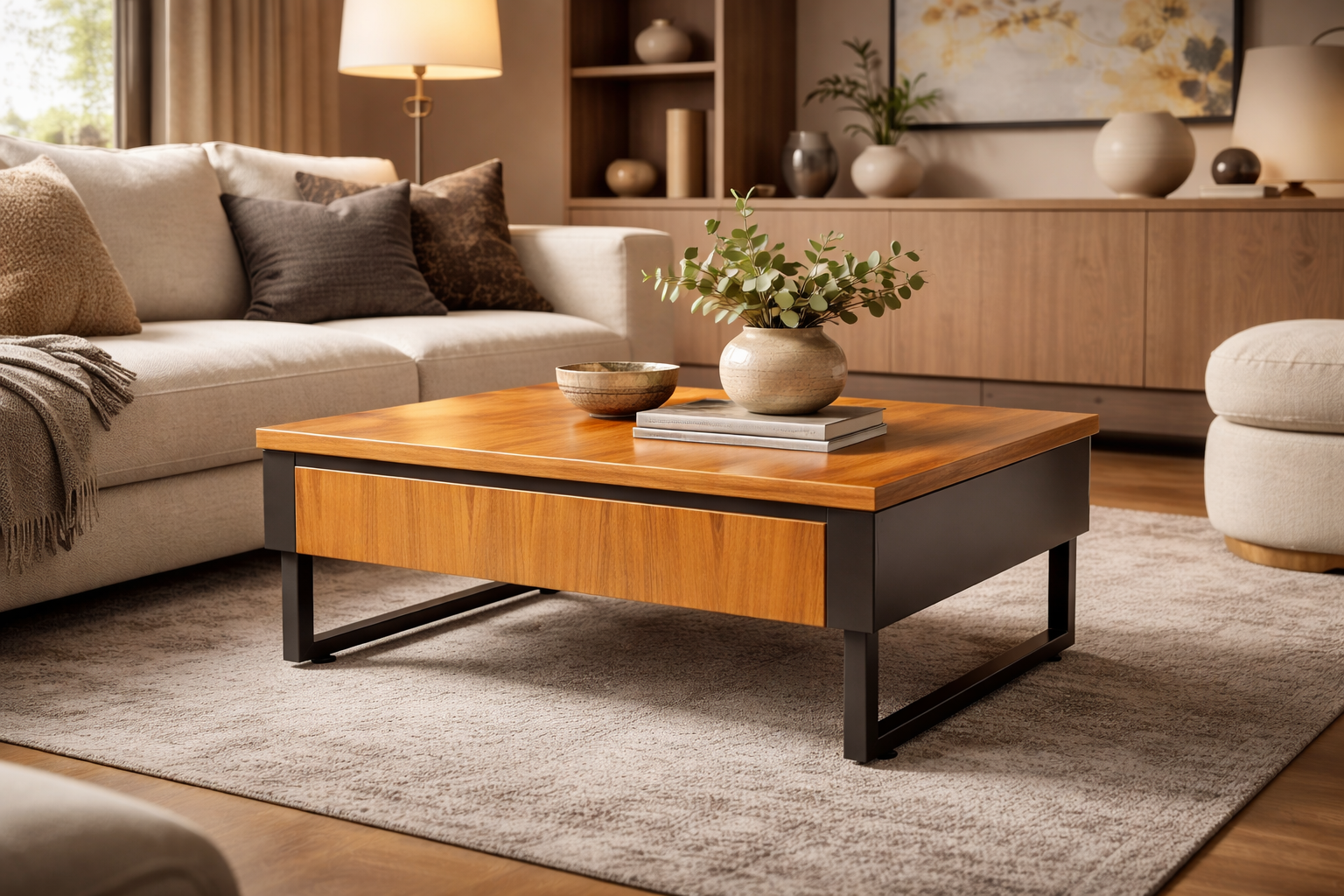 La Mesa de Centro Nodo nace del equilibrio entre diseño contemporáneo y nobleza natural. Su estructura está fabricada en madera contrachapada de alta calidad, lo que garantiza estabilidad, precisión y durabilidad, mientras que su cubierta de parota natural aporta carácter, vetas vivas y una presencia cálida que hace única cada pieza.