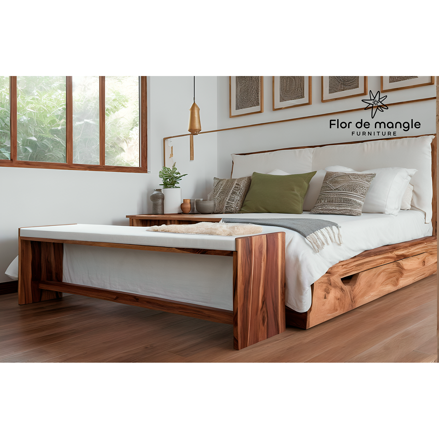 Añade funcionalidad y calidez natural a tu recámara con nuestro Pie de Cama “Ébano”, elaborado en madera natural de parota. Su diseño limpio y estructural combina la nobleza de la madera con una silueta contemporánea, perfecta para complementar camas modernas o rústicas. El asiento superior puede usarse como banca para vestir, colocar cojines decorativos o simplemente como un detalle estético que da unidad a tu habitación.